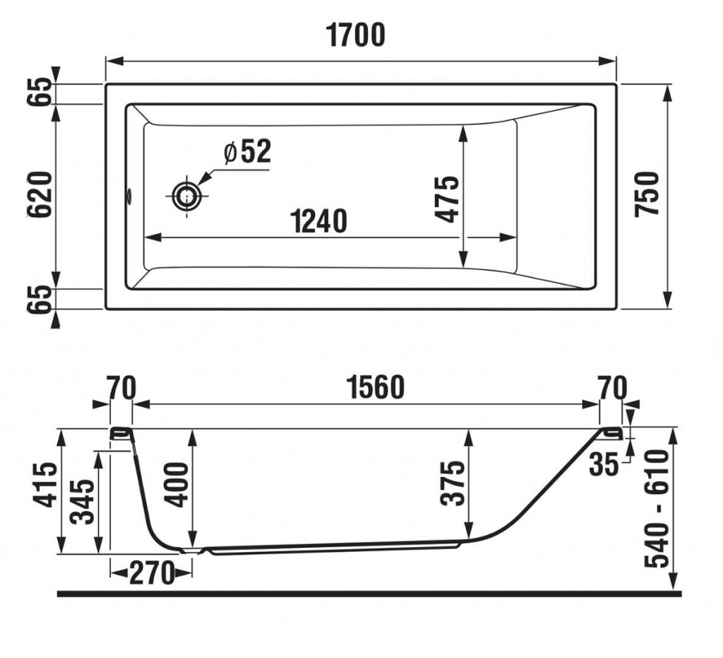 Nohy k vaně a odtokovou soupravu je nutné objednat zvlášť.