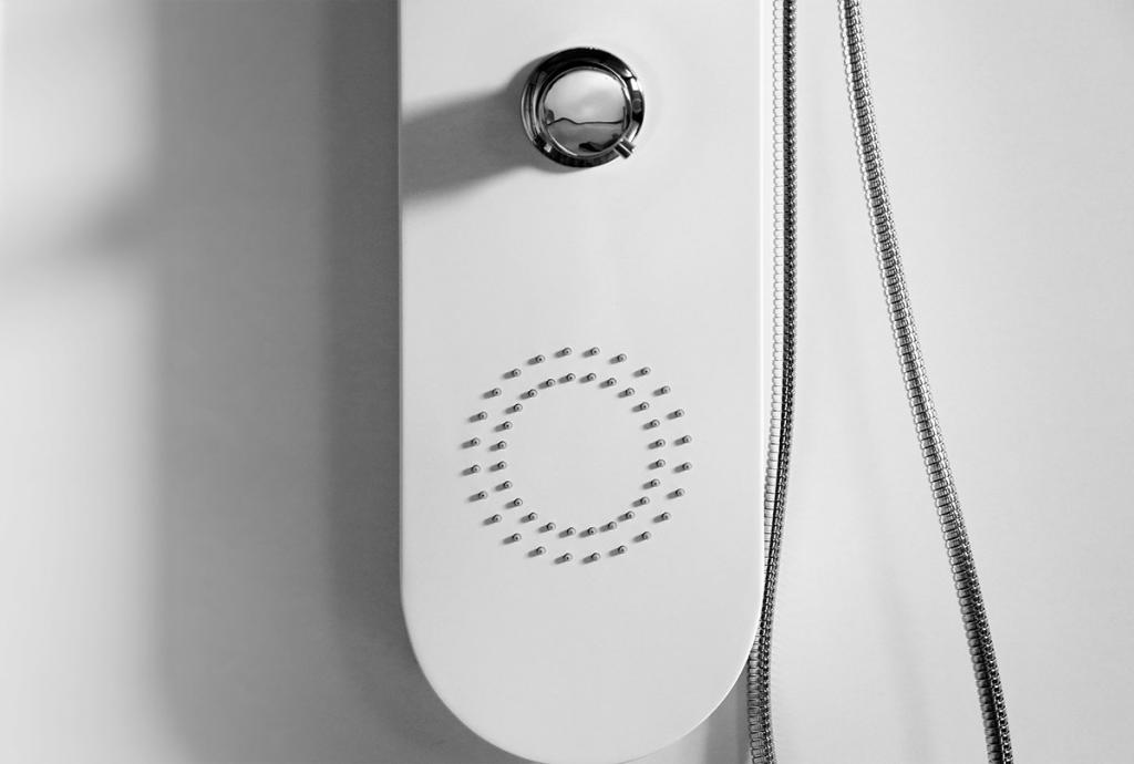 Také prostřednictvím hydromasážního panelu vytvoříte luxusní sprchovací prostor. Hydromasážní sprchové panely mají vrchní sprchu, která je pevná a spodní sprchu, která je spojena s panelem chromovou flexibilní hadicí a ručně nastavitelné trysky. Funkce panelu se programují pomocí regulátoru. Silnějším pootočením se otevírá a zavírá přívod vody, slabším pootočením se mění jednotlivé fukce. K montáži nepotřebujete žádné speciální zařízení. Jednoduše ho připojíte flexibilními hadicemi na přívod teplé a studené vody.