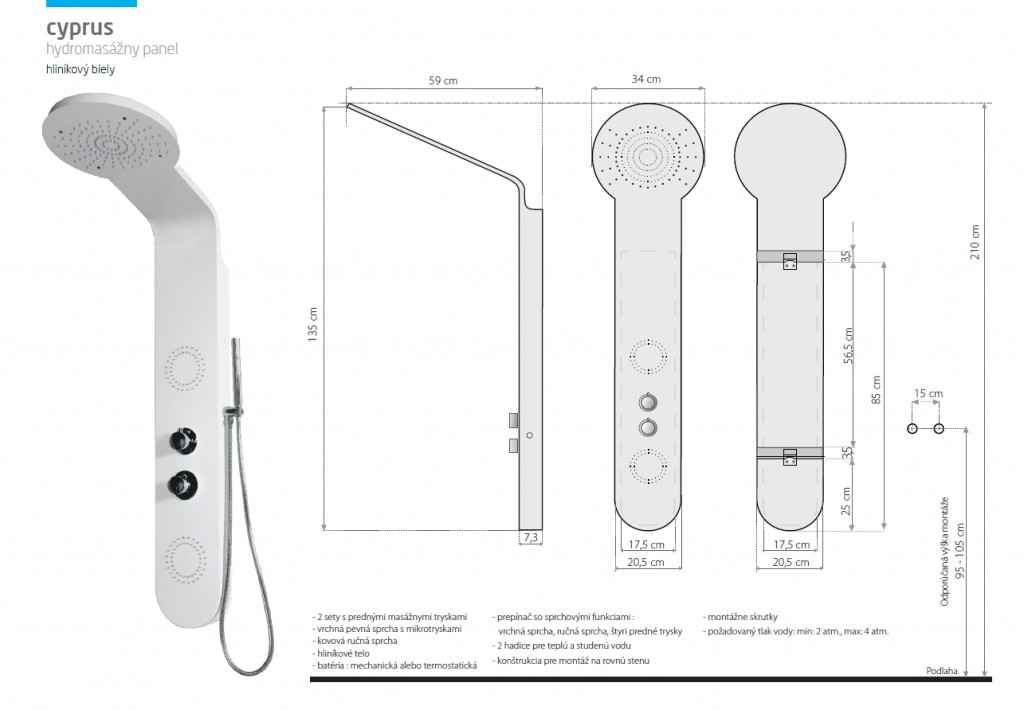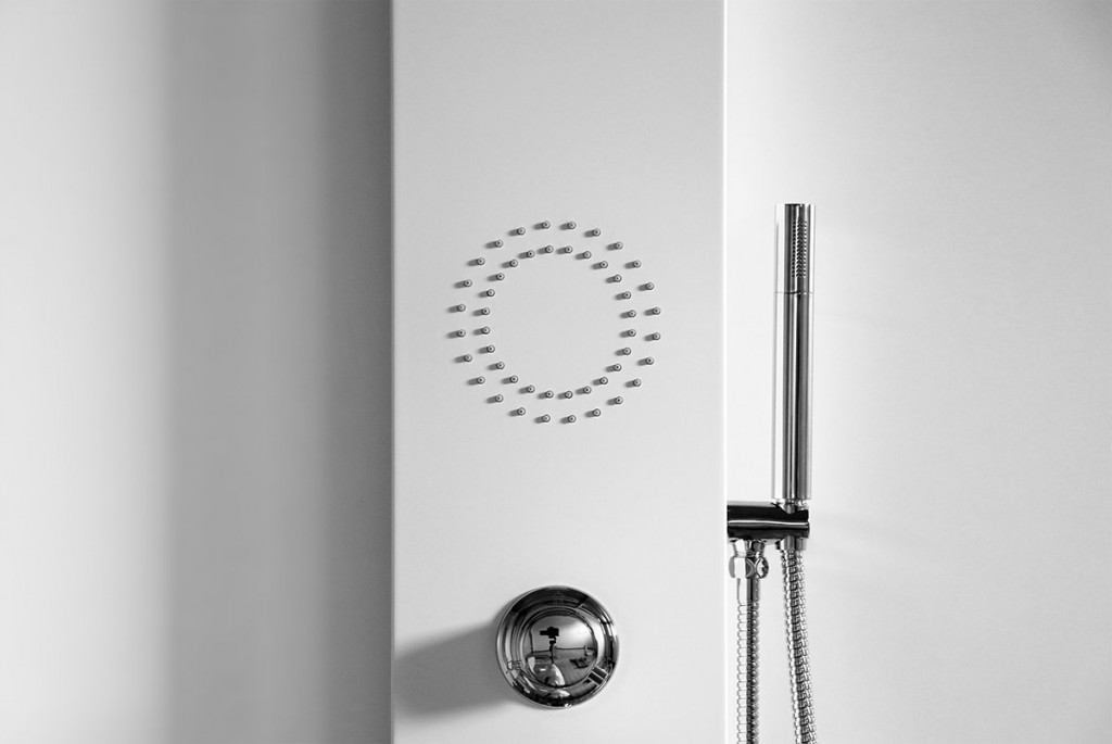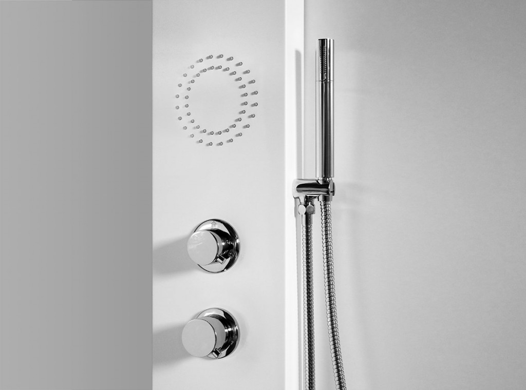 Také prostřednictvím hydromasážního panelu vytvoříte luxusní sprchovací prostor. Hydromasážní sprchové panely mají vrchní sprchu, která je pevná a spodní sprchu, která je spojena s panelem chromovou flexibilní hadicí a ručně nastavitelné trysky. Funkce panelu se programují pomocí regulátoru. Silnějším pootočením se otevírá a zavírá přívod vody, slabším pootočením se mění jednotlivé fukce. K montáži nepotřebujete žádné speciální zařízení. Jednoduše ho připojíte flexibilními hadicemi na přívod teplé a studené vody.