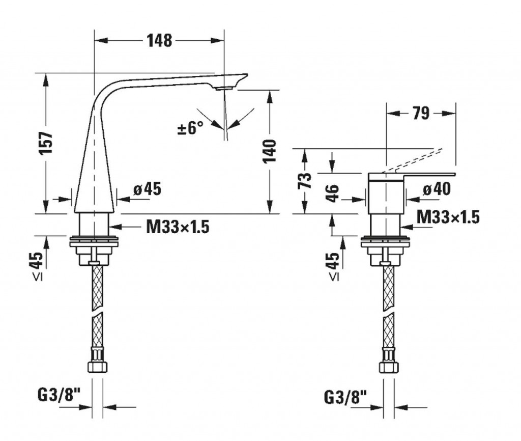 - flexibilní přípojky G 3/8"
