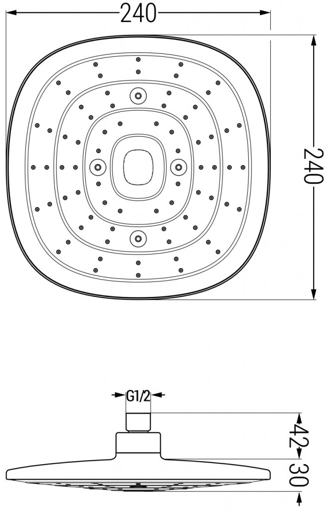 Hlavová sprcha D-17 s rozměry 24x24 cm