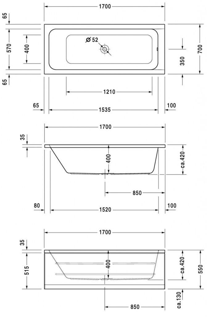 Odtoková a přepadová souprava vany není součástí dodávky.