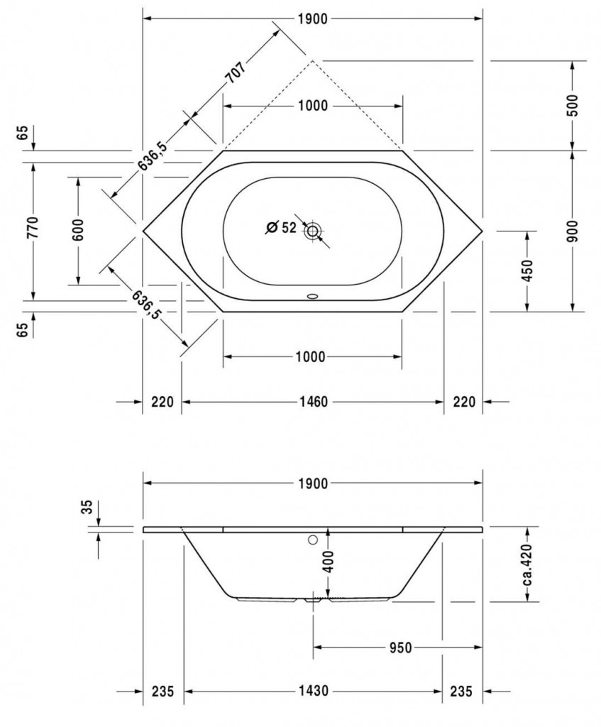 - průměr odpadu: 52 mm (uprostřed vany)