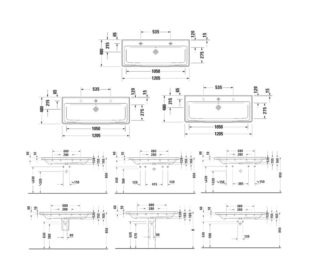 K upevnění umyvadel od velikosti 1 000 mm jsou potřeba dva upevňovací prvky #6951000000