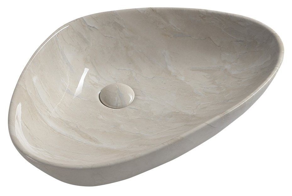 Série keramických umyvadel DALMA zaujme kamenným efektem. Umyvadla jsou glazovaná s vypálenými obtisky v designu kamene, čímž je zaručena stálost a trvanlivost dekoru. Vybírat můžete nejen ze tří dekorů v odstínech mramoru, ale i z pěti tvarů. Umyvadla jsou určena k postavení na desku, ke všem lze dokoupit uzavíratelnou výpust v barvě umyvadla.