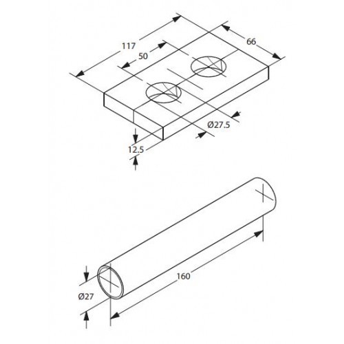 Popis Set 1 obdélníkové rozety s 50 mm roztečí a 2 krytů na potrubí v délce 16 mm