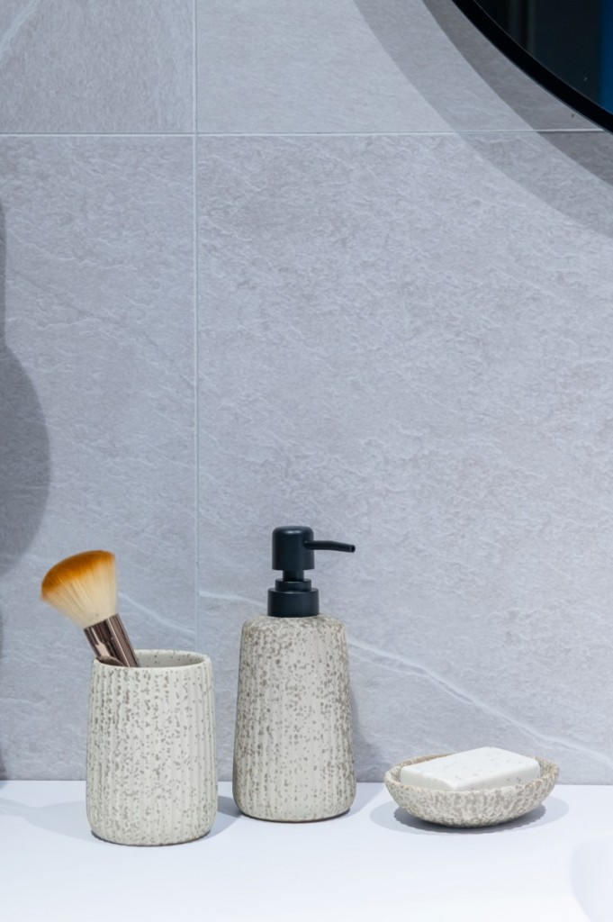 Objevte modernost a funkčnost s naší řadou Avilla! Náš dávkovač tekutého mýdla o objemu 400 ml je dokonalou kombinací stylu a praktičnosti. Vyrobeno z jedinečné kameniny, s jemným šedým odstínem a elegantními hnědými skvrnami, dodá vaší koupelně jedinečný charakter. Černé čerpadlo poskytuje hladkou a přesnou dávku mýdla a vytváří tak nejen praktický, ale i krásný prvek vašeho okolí.