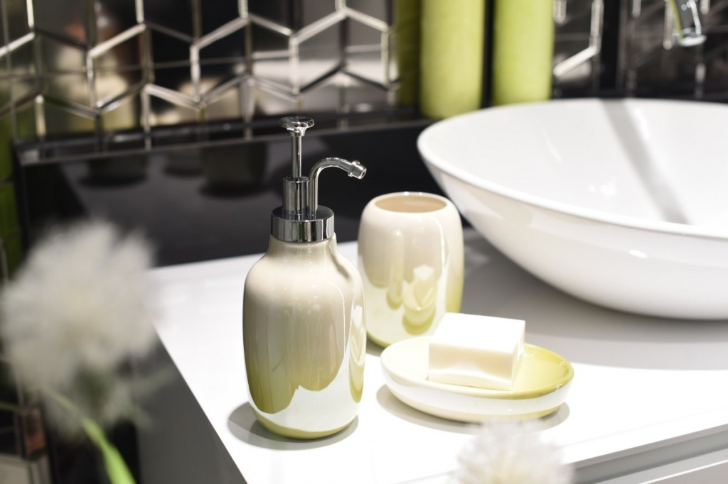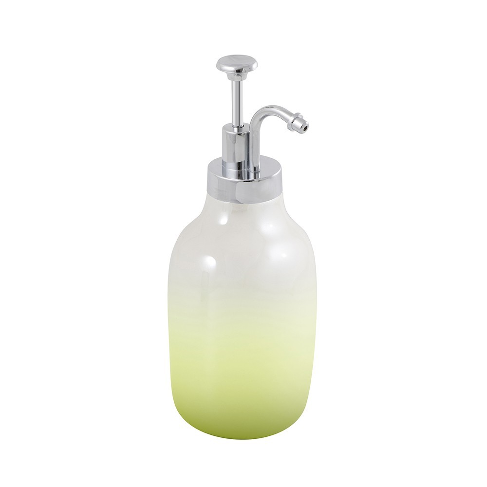 Keramický dávkovač mýdla ze série FIORE. Za jeho elegantní vzhled vděčí mj. barvy, které jsou jemnou kombinací odstínů bílé perleťové a olivově zelené. Kapacita dávkovače je 300 ml.