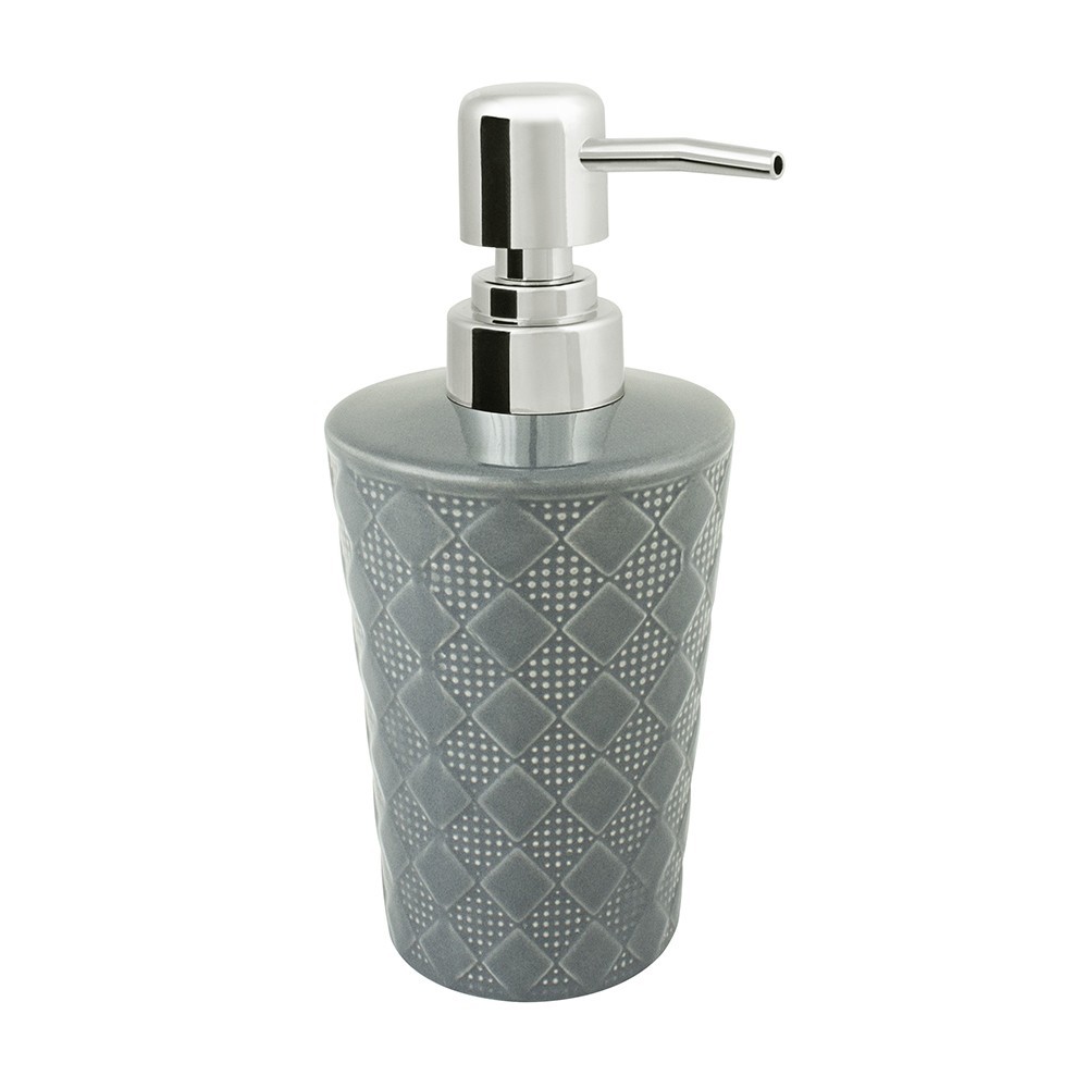Dávkovač tekutého mýdla je součástí koupelnové sady Karos. Skládá se z velkoobjemové nádoby o objemu 280 ml a praktické dávkovací pumpičky. Koupelnová sestava Karos má patchwork texturu a neutrální šedou barvu, takže se bude dobře vyjímat v klasickém i moderním aranžmá.