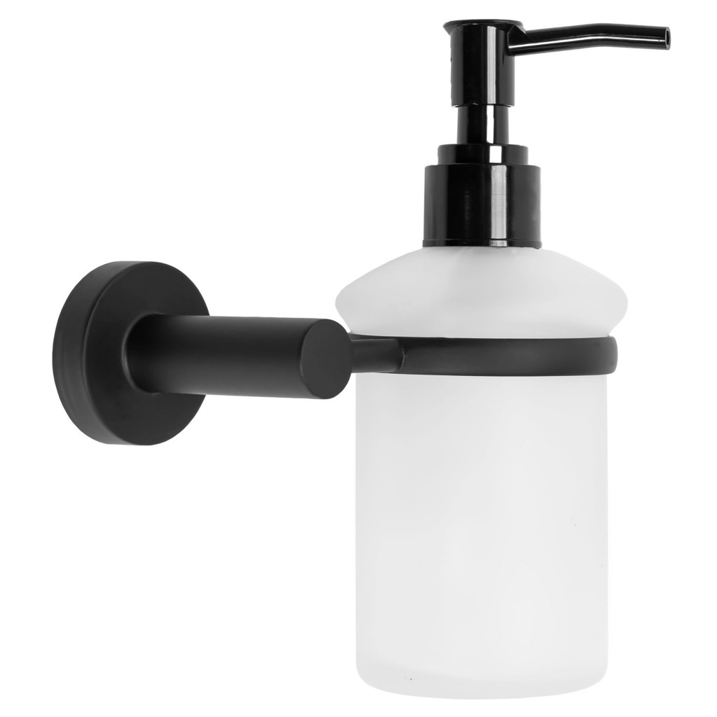 Dávkovač mýdla vyrobený z mléčného skla se skvěle hodí do moderní koupelny. Dávkovač se instaluje připevněním na stěnu pomocí šroubů (součástí balení). Vlastnosti produktu: - vyrobeno ze skla a kovu - černé provedení - jednoduchá montáž pomocí šroubů - pěkný a moderní vzhled - montážní sada součástí
