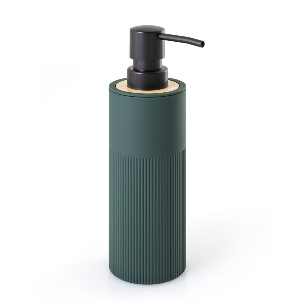 Dávkovač mýdla ze série Frida zaujme krásným odstínem lahvově zelené.Vyrobeno z elegantního matného plastu, dodává osobitý charakter. Černá pumpička a ozdobný prsten z pravého bambusového dřeva skvěle doplňuje lahvově zelený odstín a působní elegantně a stylově.