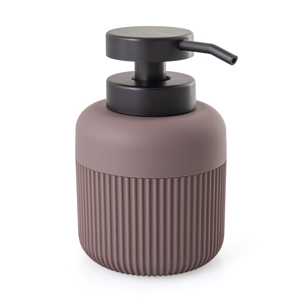 Dávkovač mýdla ze série Loreto v mimořádné tlumené švestkově fialové barvě je skutečnou ozdobou koupelny. Jeho velký objem 450 ml zajišťuje dlouhodobé používání bez nutnosti častého doplňování mýdla. Vyrobeno z matného plastu, má elegantní vzhled a ozdobné drážky jej činí výjimečně estetickým. Černá, široká dávkovací pumpa skvěle doplňuje švestkově fialové barevné provedení a dodává celému kousku harmonický a velmi moderní vzhled.