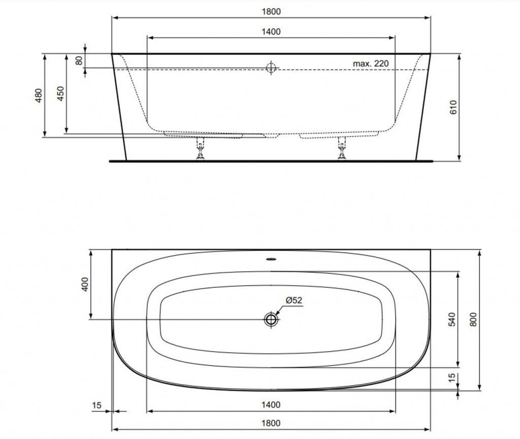 - součástí je odtoková a přepadová souprava s funkcí napouštění vany