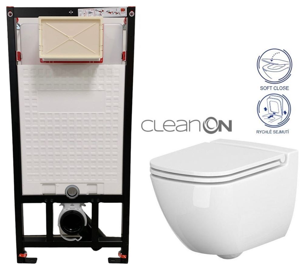 Závěsná mísa CASPIA NEW CLEAN ON /bez oplachového kruhu/ se zadním odtokem, funkce splachování 2/4l, 25,/5l nebo 3/5l.