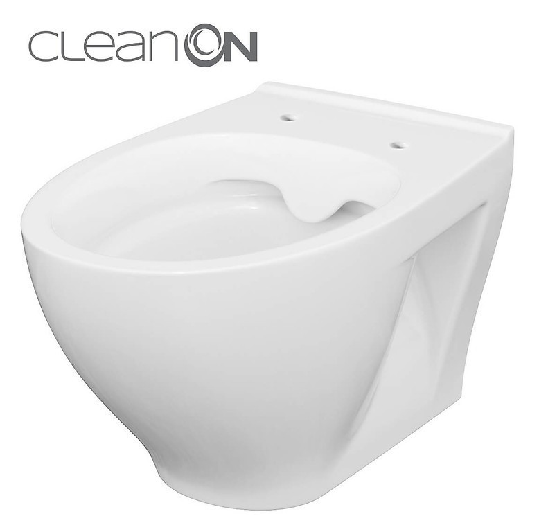 Oválná závěsná WC mísa MODUO s technologií CleanOn /bez oplachového kruhu/, kde se neshromžďují nečistoty jako ve standardních WC mísách s klasickým uzavřeným kruhem a jejich údržba je snažší a hygieničtější. WC mísa má úsporný oplach vody 3/5l.