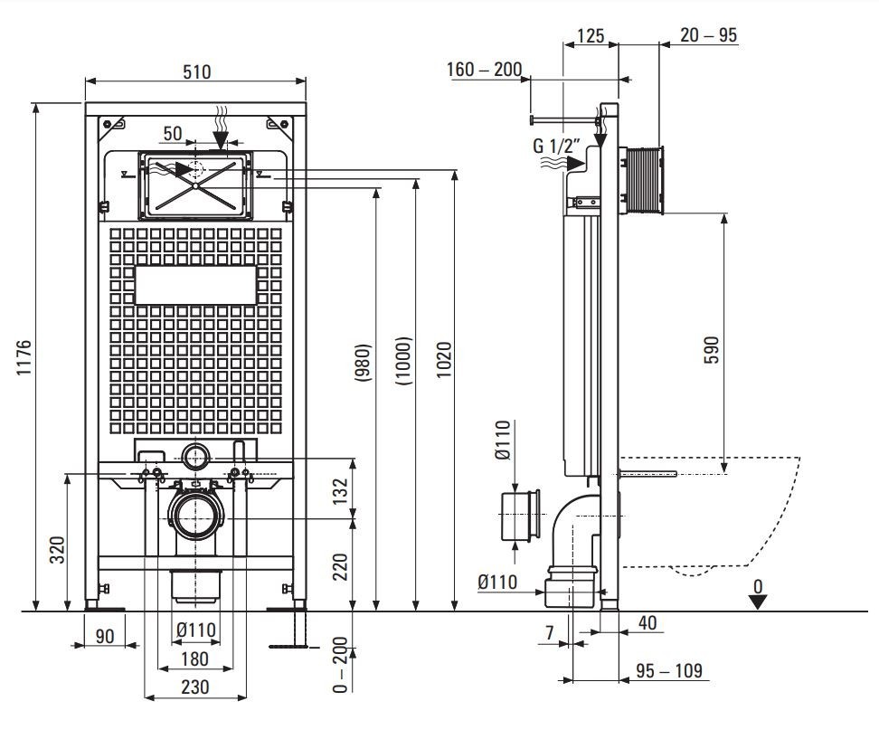 Podomítkový rám je určen k zavěšení WC mís. Je vybaven systémem dvojitého splachování a dodatečným zvukotěsným těsněním. Celek je stabilizován odolným ocelovým rámem.