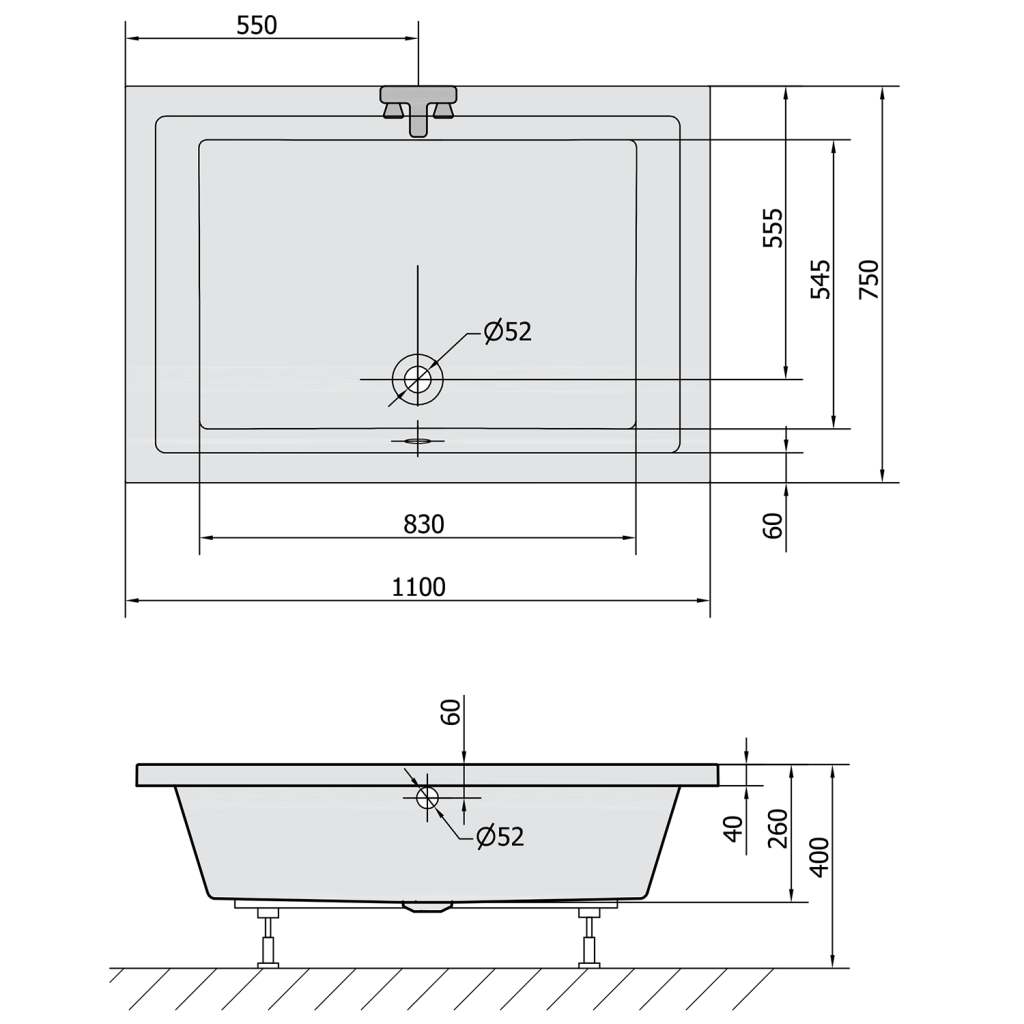 - V případě podezdění doporučujeme k vaničce zakoupit nohy (podstavec).
