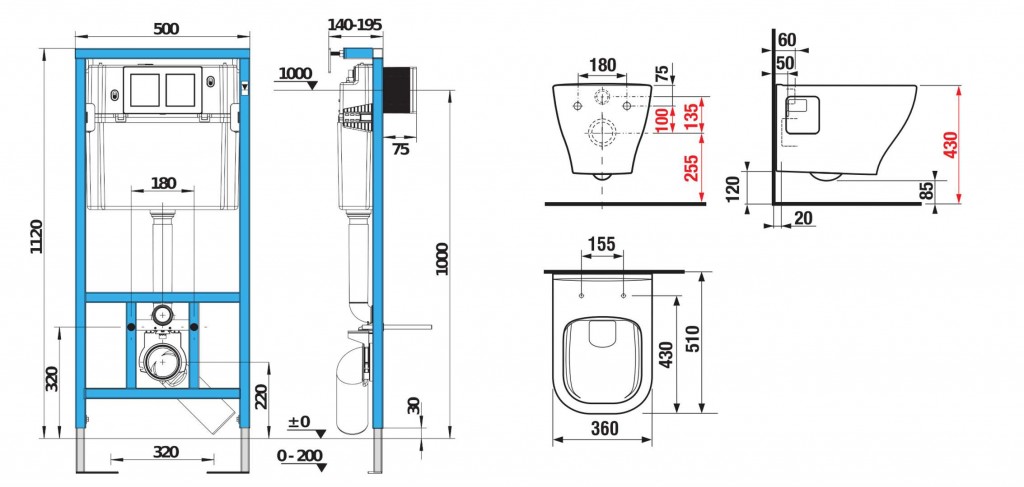 WC sedátko a splachovací tlačítko nejsou součástí WC setu - nutno dokoupit zvlášť.