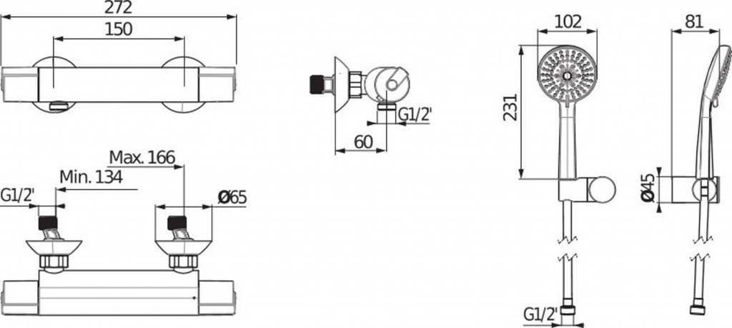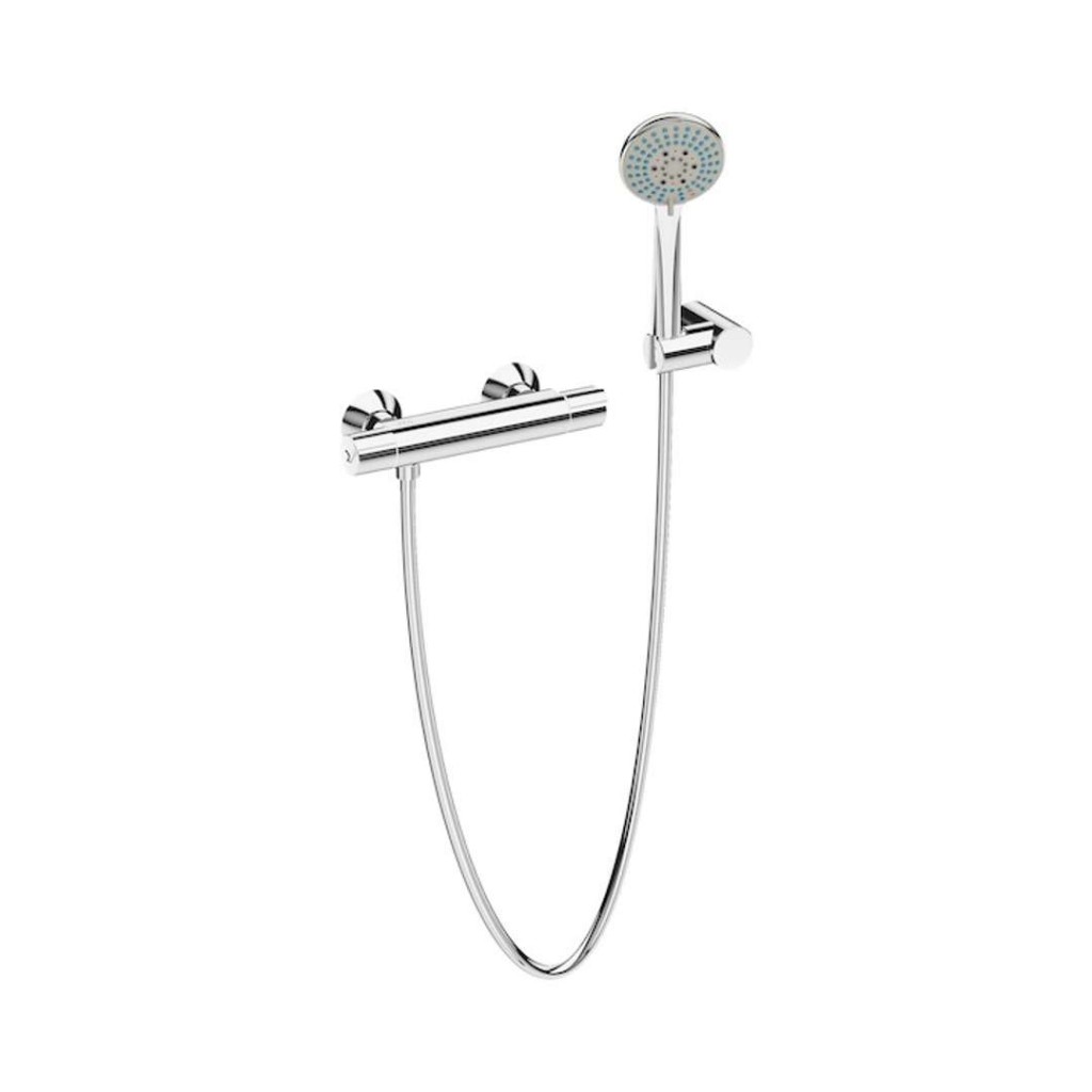 Sprchová nástěnná termostatická baterie s ruční sprchou 100 mm, držákem a sprchovou hadicí