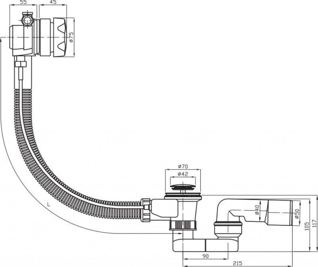 Automatická vanová výpusť s napouštěním včetně vanového sifonu 40/50 mm, plastové tělo přepadu