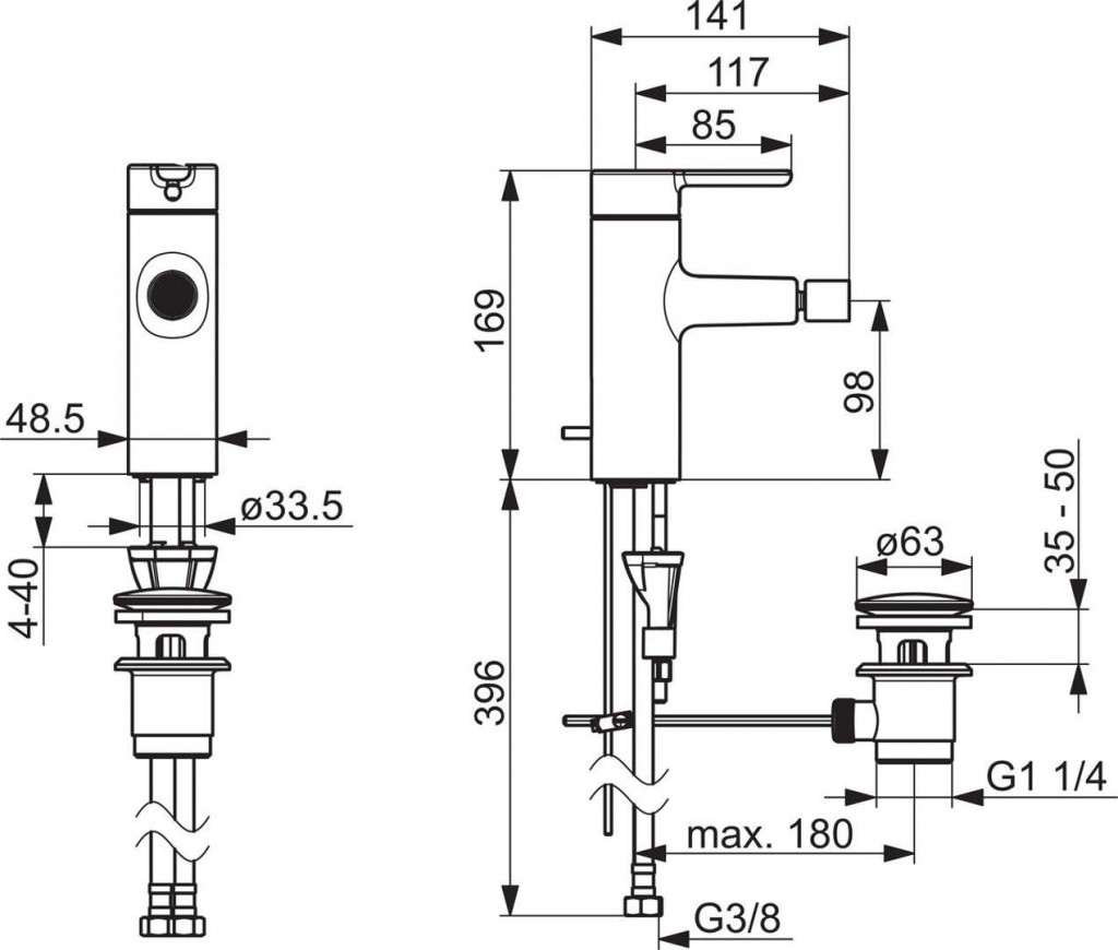 Bidetová páková baterie DESIGNO Style, DN15