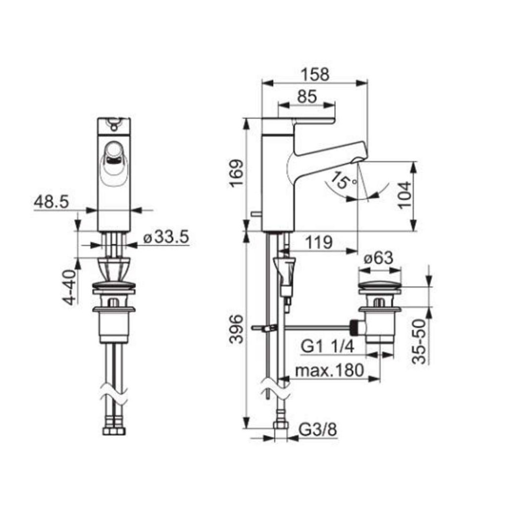 Stojánková páková umyvadlová baterie DN15