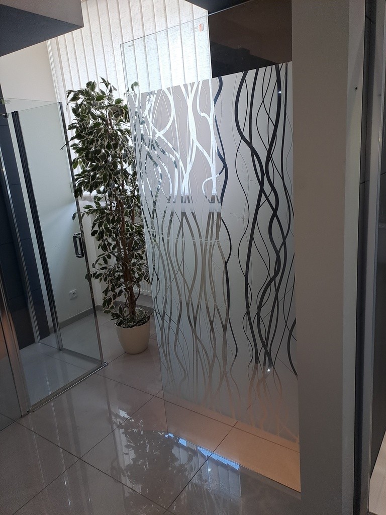 Pro jakýkoliv sprchový kout v čirém provedení skla je možnost individuálního polepu touto kvalitní designovou fólií.