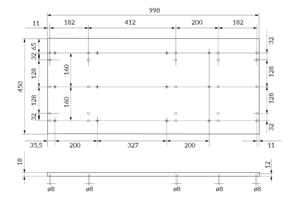 Stolní deska z dřevotřísky v teplém dubovém odstínu, určená pro kombinaci s podpultovými skříňkami MODUO.