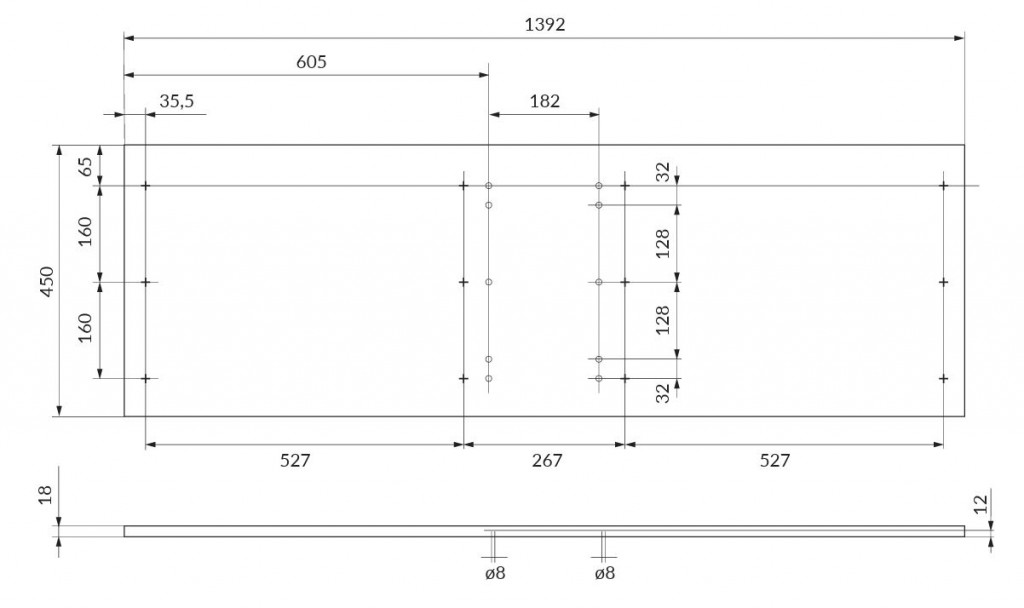 Dřevotřísková deska stolu v teplém dubovém odstínu, určená pro kombinaci s podpultovými skříňkami MODUO.