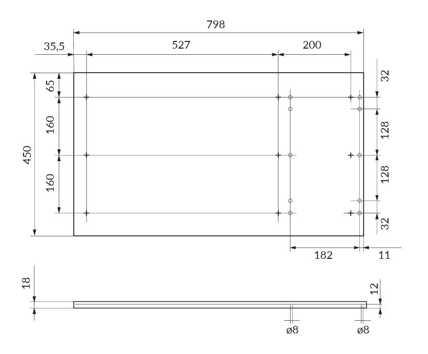 Pracovní deska vyrobená z vlhkostvzdorné dřevotřísky v teplém dubovém odstínu, určená pro kombinaci s podpultovými skříňkami MODUO.
