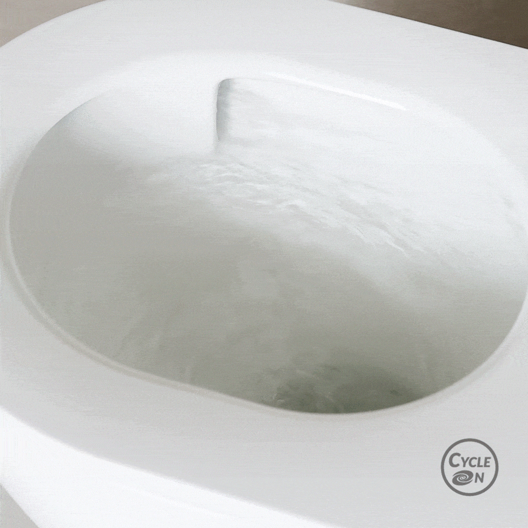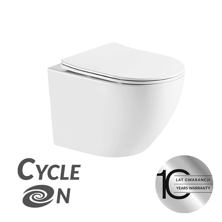 Závěsná toaleta Desna CycleON je produkt se systémem CycleON, který využívá inovativní technologii vířivého splachování silným proudem vody. Nezávislé testy prokázaly, že tato nová metoda účinně čistí vnitřní povrch toaletní mísy s použitím pouhých 4 nebo 6 litrů vody. Tato mísa se vyznačuje bezokrajovým designem, díky čemuž se snadno udržuje v čistotě. Navíc je díky svému zajímavě navrženému tvaru ideální pro moderní koupelny. Mezi klíčové výhody patří: • Důkladné oplachování a úspora vody, • Silný vír vody, který účinně odstraňuje nečistoty a snižuje tak potřebu toaletního kartáče, • Řešení prakticky bez stříkající vody a tiché řešení, které zvyšuje pohodlí, • Kontrolovaný a koncentrovaný výkon, eliminující stříkající vodu mimo určenou oblast. Toaleta Desna CycleON se pyšní elegantním designem, který doplňuje řadu koupelnových konceptů. Sedátko toalety, které je součástí sady, má navíc odolné panty s mechanismem tlumeného dovírání a rychloupínacím systémem. To vše je vyrobeno z extrémně odolného plastu, odolného vůči poškrábání a změně barvy.