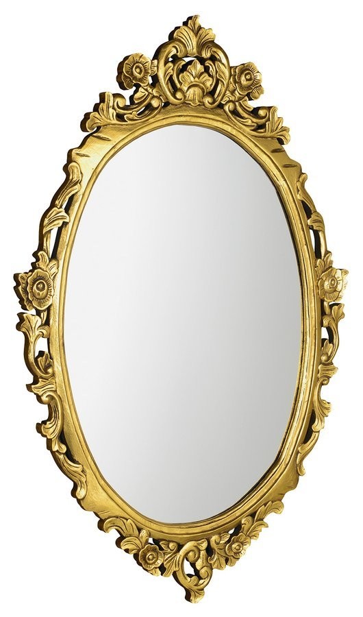 SAPHO - DESNA oválné zrcadlo ve vyřezávaném rámu, 80x100cm, zlatá (IN352)
