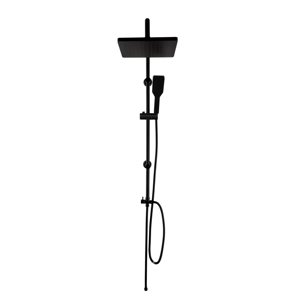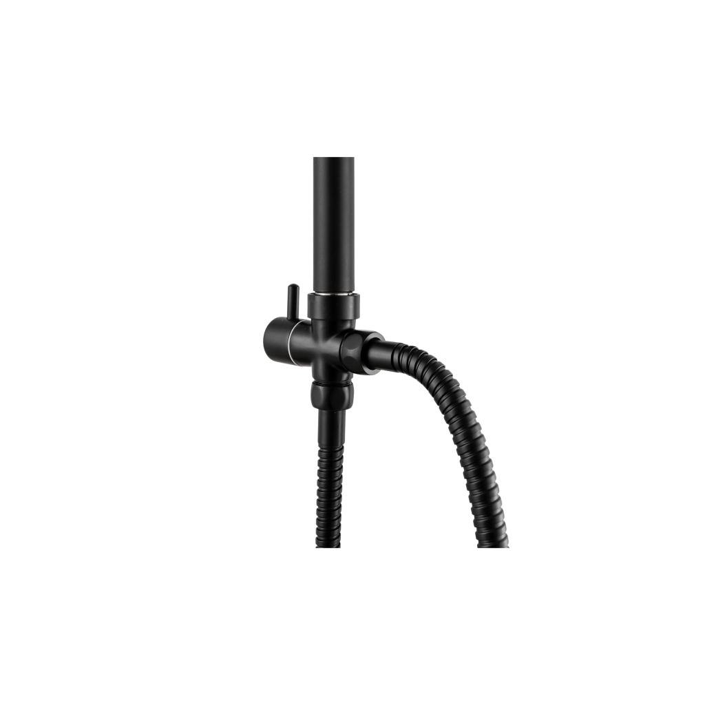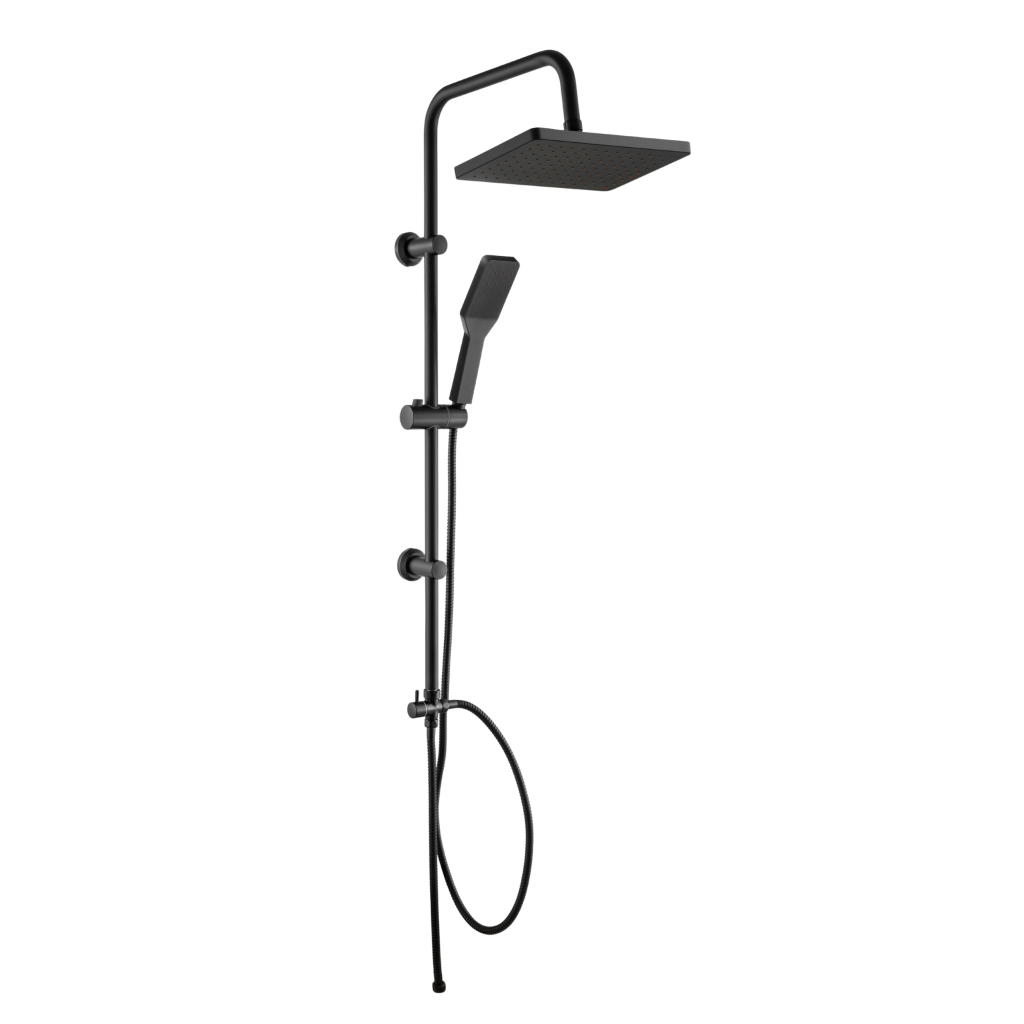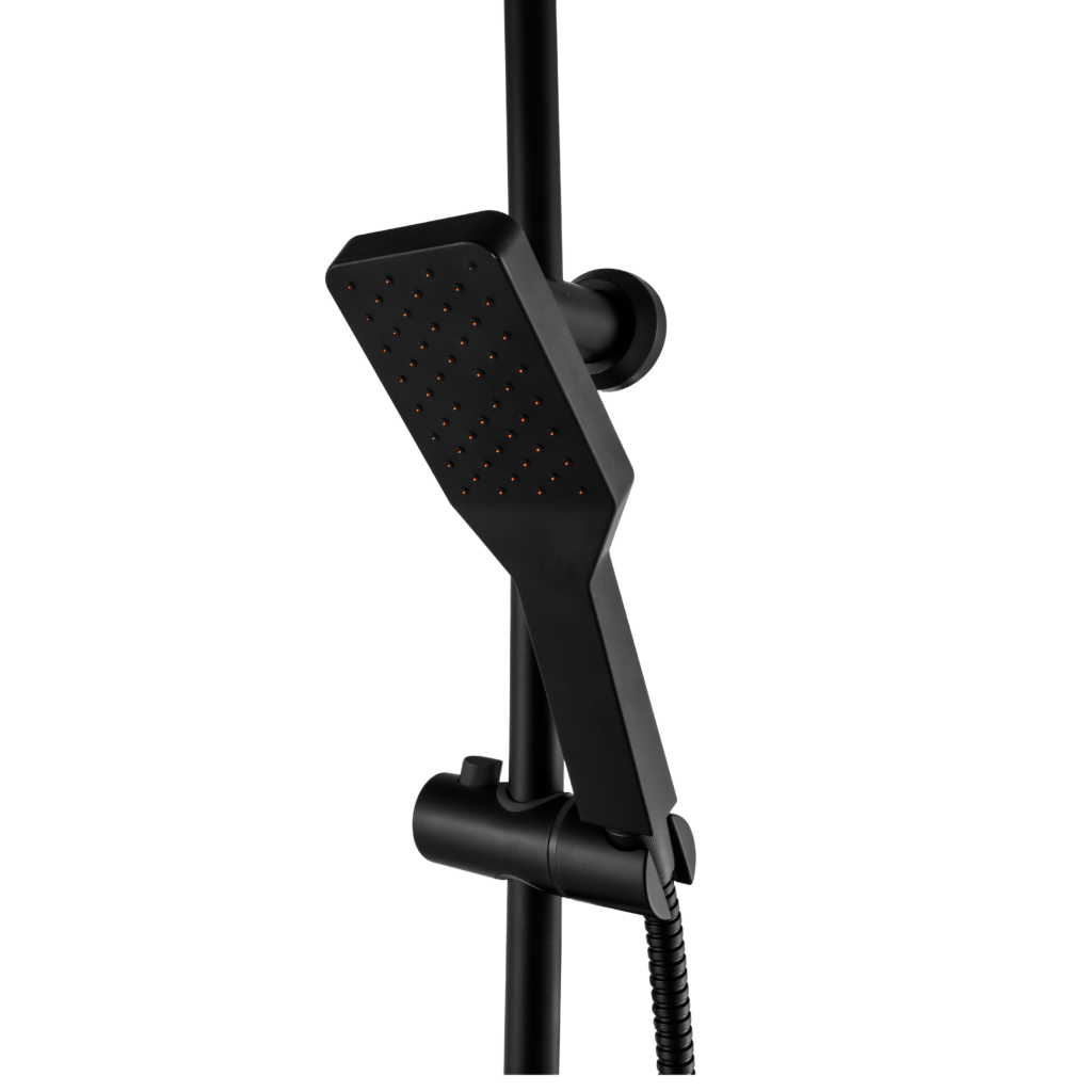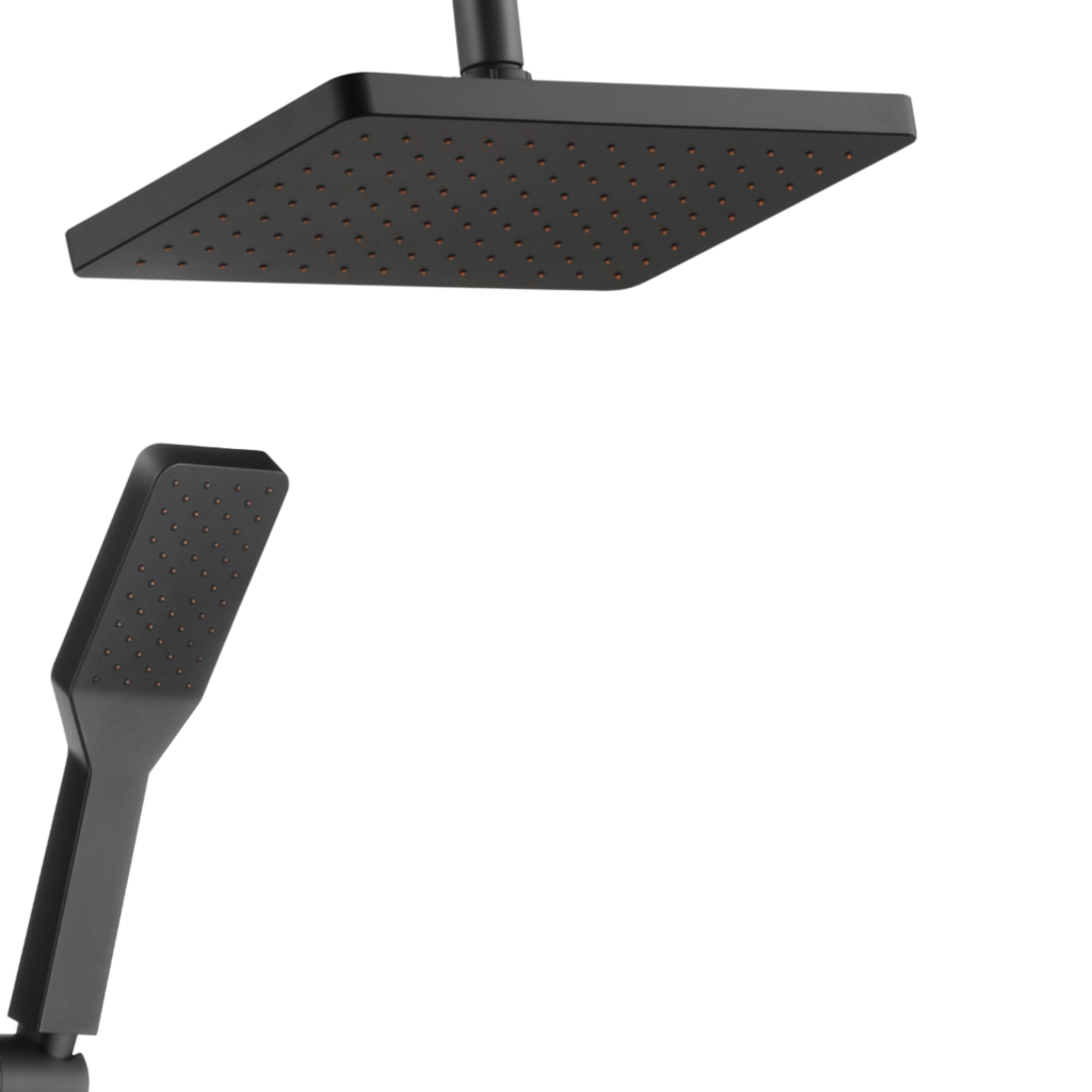 AMFISA v černé barvě – moderní forma a čistota, která se stane sama od sebe. Dešťová sprcha AMFISA v černé povrchové úpravě není jen designovým prvkem do koupelny – je to praktické řešení pro ty, kteří si cení estetiky a snadného použití. Díky samočisticí funkci se speciální výstupky v tryskách flexibilně pohybují s proudem vody a zabraňují usazování vodního kamene. Horní tryska čtvercově-oválného tvaru o rozměrech 25 x 17 cm, vyrobená z ABS plastu, zajišťuje rovnoměrné rozložení vody. Technologie Anti-calc + self-clean udržuje sprchovou hlavici déle jako novou, takže není nutné drhnout trysky. Ruční sprchová hlavice s jednou funkcí (6,3 x 23 cm) je také vybavena samočisticími tryskami. Snadné použití zajišťuje posuvná rukojeť s tlačítkem, manuální přepínač zdroje vody, nastavitelné montážní konzole a hadice: sprchová hadice o délce 150 cm a hadice na kohoutek o délce 60 cm – obě vyrobené z dvojitě opletené nerezové oceli.