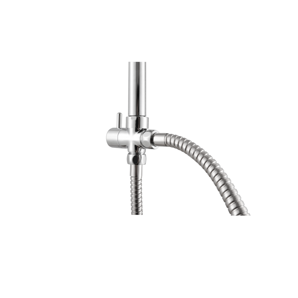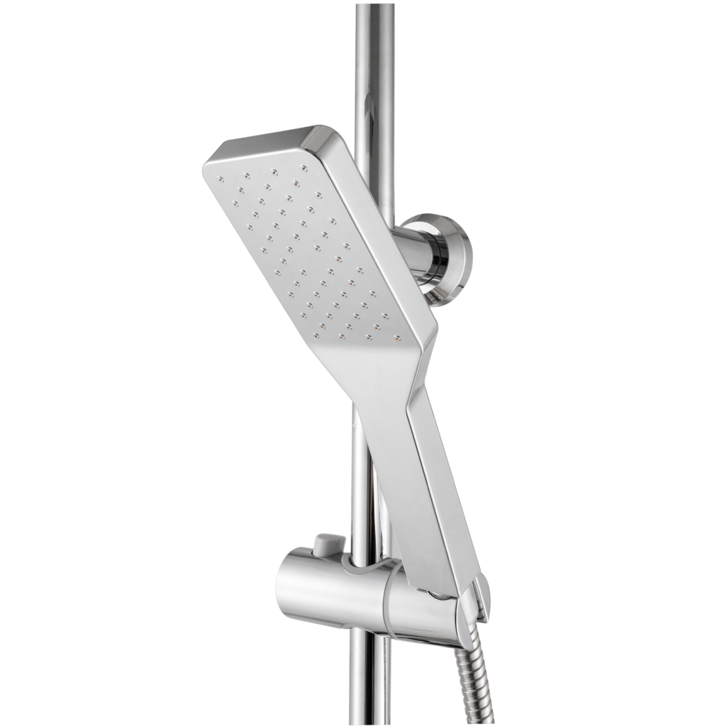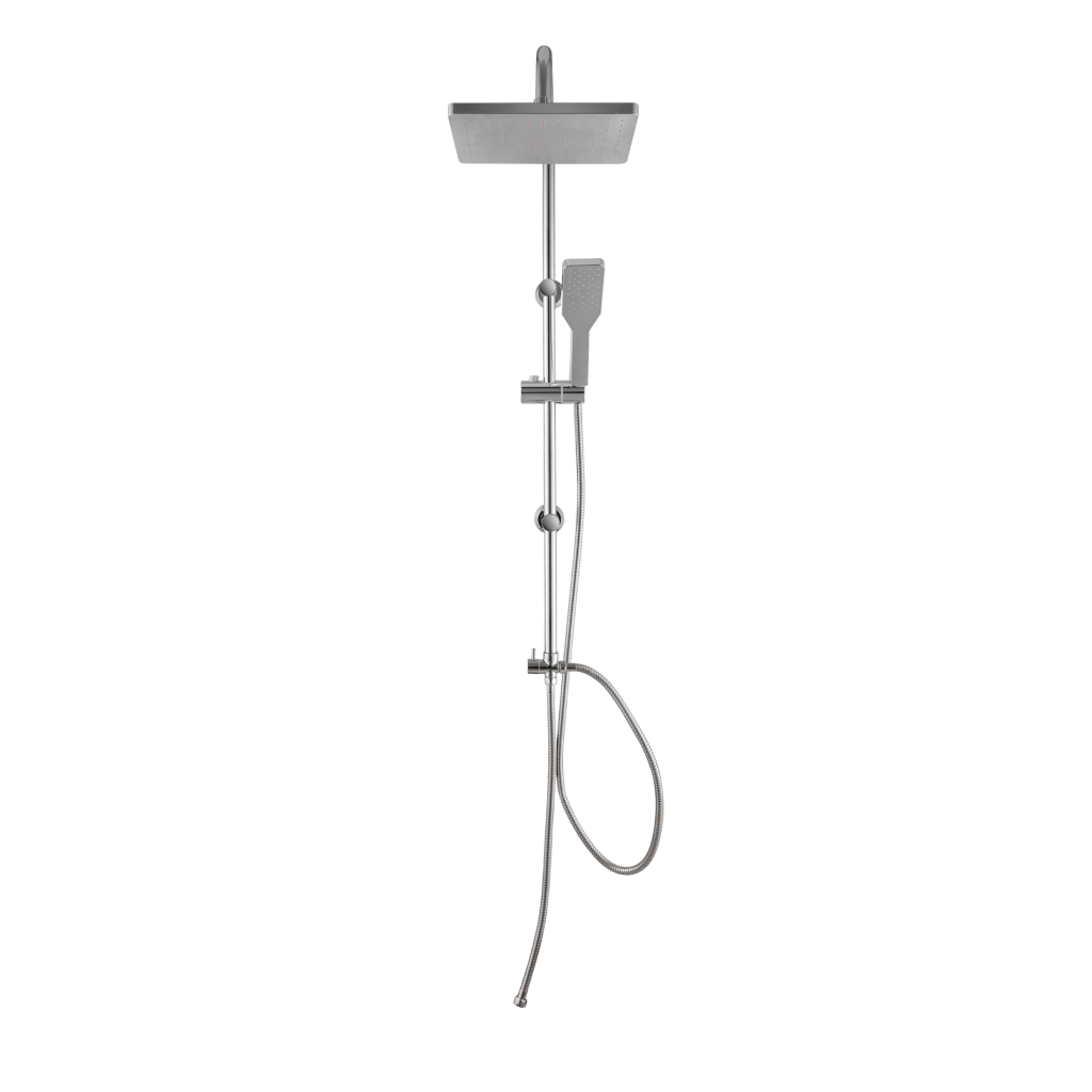 AMFISA v chromu – elegance každodenního pohodlí se samočisticí technologií. Chromovaný sprchový dešťový sloup AMFISA je moderní sprchový sloup o výšce 100 cm, navržený s ohledem na pohodlí, odolnost a hygienu. Jeho největší výhodou je samočisticí systém s pohyblivými tryskami v místech rozstřiku, který účinně zabraňuje usazování vodního kamene – bez nutnosti drhnutí. Pohyblivá horní sprcha o rozměrech 25 x 17 cm, vyrobená z lehkého ABS plastu, zaručuje příjemný rozstřik. Díky technologii proti vodnímu kameni a funkci samočištění zůstávají trysky vždy čisté a ucpané. Ruční sprchová hlavice s jednou funkcí (normální proud) o rozměrech 6,3 x 23 cm je také vybavena samočisticím systémem. Součástí sady je nastavitelná posuvná rukojeť s tlačítkem, ruční přepínač zdroje vody, ocelová sprchová hadice o délce 150 cm a připojovací hadice o délce 60 cm, což splňuje potřeby moderní koupelny.