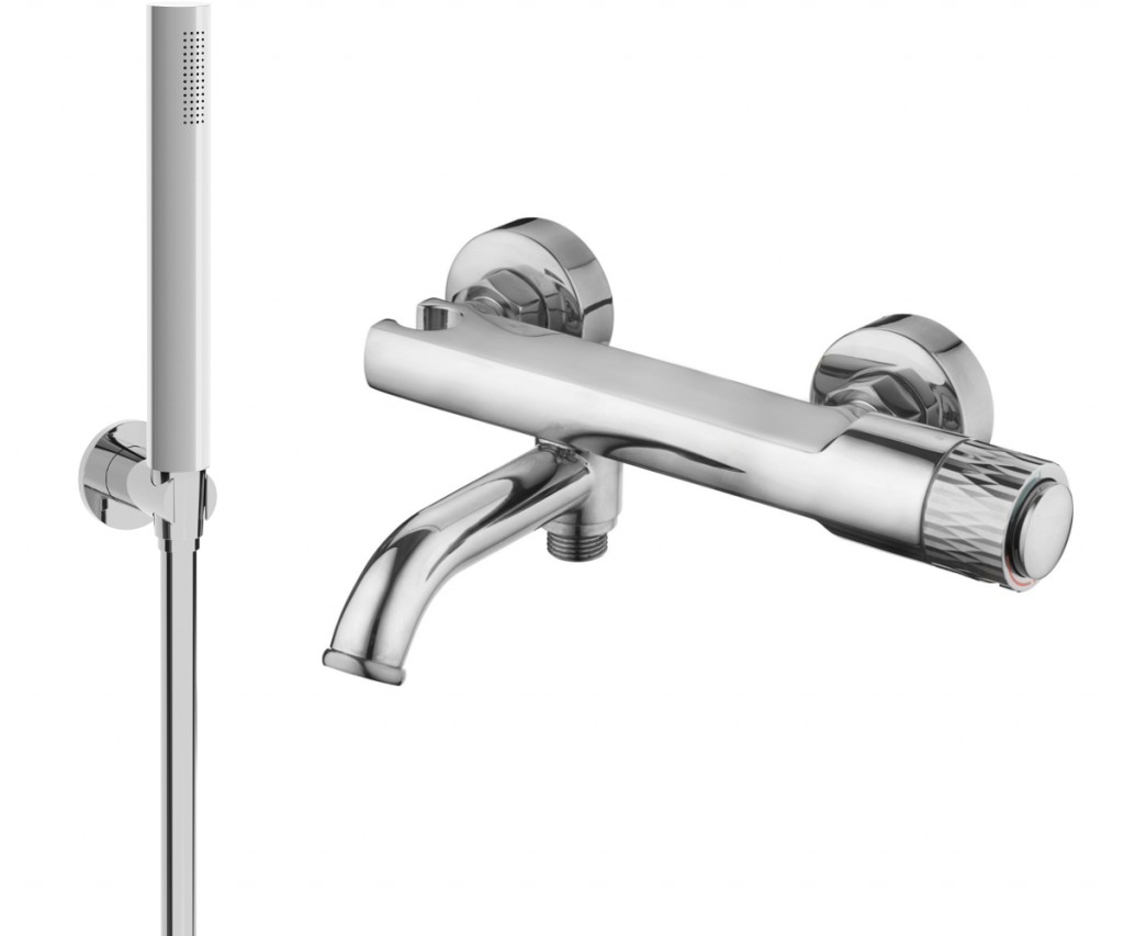 Vanová baterie DIAMOND vyrobená z mosazi, opatřená povrchovou úpravou v různých barevných variantách. Připojení má standardní G1/2". Zapnutí a vypnutí produ vody se provádí pomocí postraního tlačítka ON-OFF a regulaci teploty vody nastavíte pomocí otočného kohoutu.