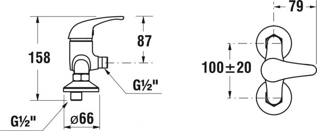 Sprchová nástěnná páková baterie bez sprchového příslušenství