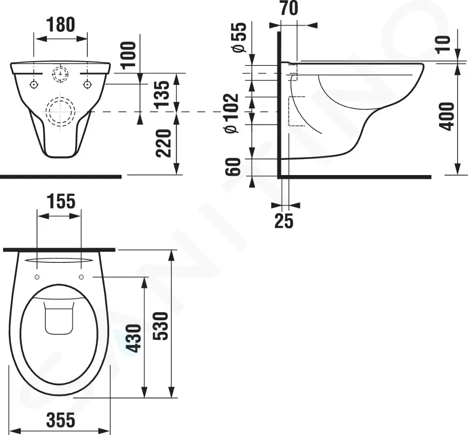 WC sedátko není součástí dodávky, nutné objednat zvlášť.