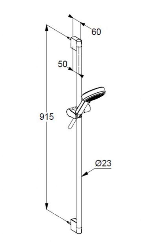 - rozteč uchycení sprchové tyče: 915 mm