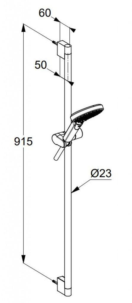 - rozteč uchycení sprchové tyče: 915 mm