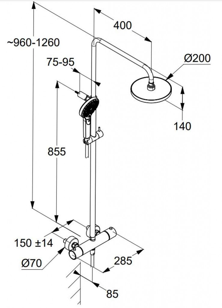 - sprchová tyč s výškově nastavitelným ramenem