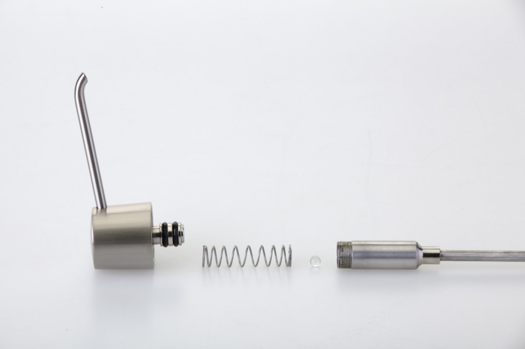 Pro naplnění stačí jednoduše vytáhnout pípu a otvorem dolít náplň. Dávkovač není nutné vyšroubovávat.