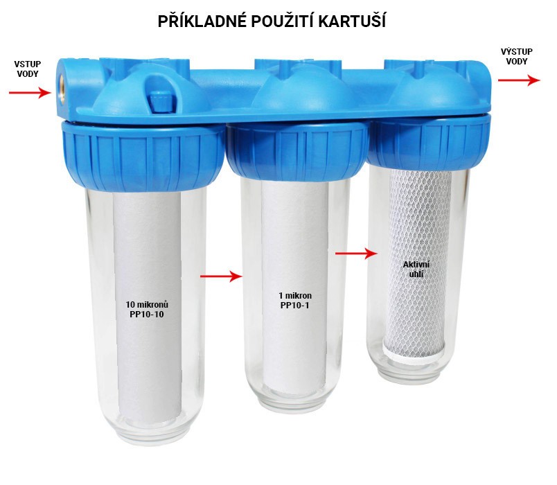 - odstraňuje z vody chlór, organické sloučeniny a suspenze
