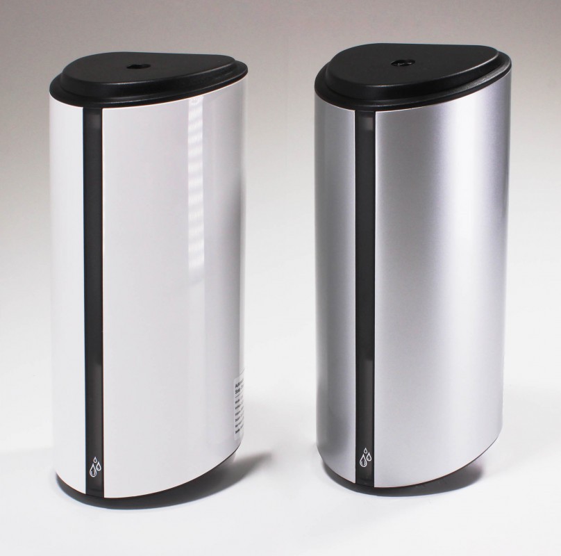 Automatický dávkovač DROP Gel je dostupný ve dvou barevných provedeních, bílé a stříbrné barvě. Tělo přístroje je vyrobeno z odolného ABS plastu.