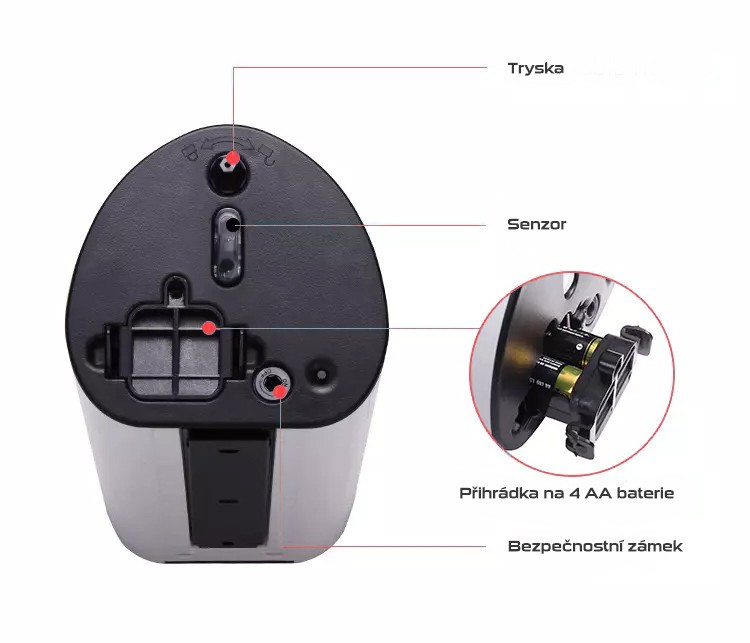 Upozornění: Pro správnou funkčnost automatického dávkovače používejte pouze výrobcem stanovené napájecí baterie. Nepoužívejte nealkalické a nabíjecí baterie, jelikož u tohoto typu dochází k jeho rychlému samo-vybíjení.