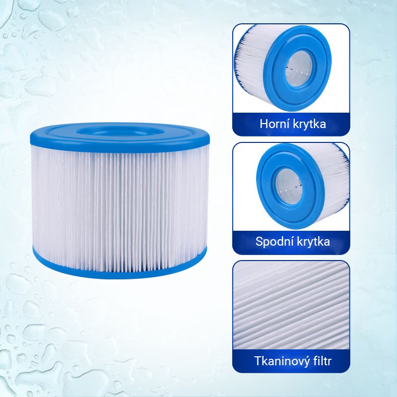 Filtr disponuje zesílenými koncovými kryty, které jsou odolné vůči rozbití a chemikáliím, které se běžně vyskytují v bazénech a vířivkách.