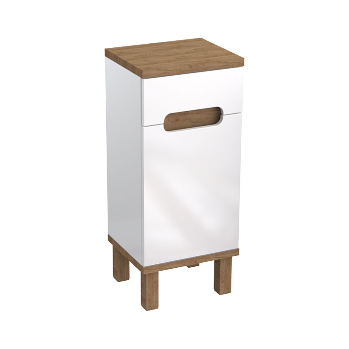 | Popis: | • doplňková koupelnová skříňka nízká • moderní kombinace bílých lakovaných ploch a doplňků v dekoru zlatý dub • 1 x dvířka s tichým dovíráním Soft-Close s frézovanými madly a možností změny směru otevírání • uvnitř skříňky je umístěna 1 výškově nastavitelná police z LTD bílé barvy • skříňka je doplněna horní deskou tloušťky 25 mm v dekoru zlatý dub • k ustavení na podlahu slouží podpěrné nožky z MDF s povrchovou úpravou fólií v dekoru zlatý dub |