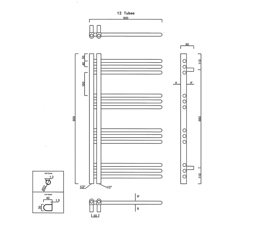Topení s jednobodovým připojenímDesignově tvarované koupelnové otopné těleso s výjimečným vzhledem je vyrobeno z ocelových trubek. U radiátoru oceníte zejména jeho praktičnost, díky své konstrukci umožňuje jednoduché a pohodlné zavěšení ručníků ze strany na horizontální tyče. Praktická rozteč 50 mm středového připojení umožňuje kombinovat s designovými ventily z naší nabídky i v kombinaci s elektrickou topnou tyčí.