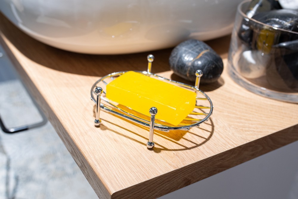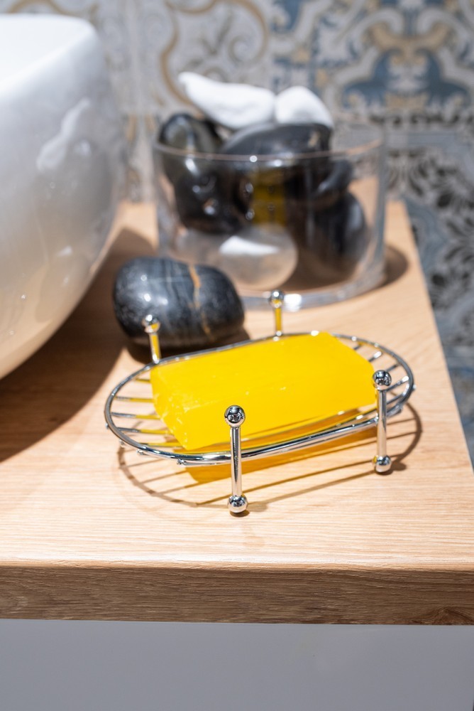 Miska na mýdlo z chromovaného drátu. Velmi snadno se udržuje v čistotě – stačí jej opláchnout vodou, abyste odstranili zbytky mýdla.
