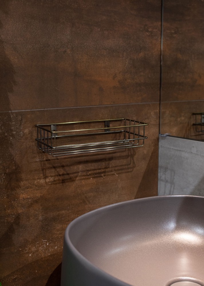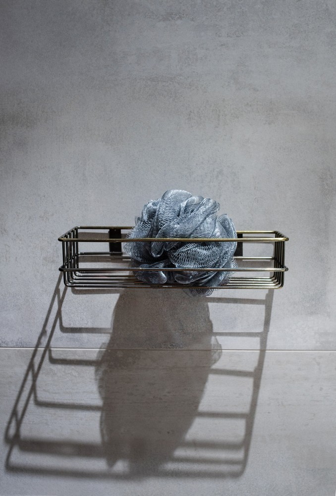 Koupelnová polička je vyrobena z pozlacené oceli s letitým efektem. Jednoúrovňový koš pojme základní sprchové příslušenství, jako je šampon na vlasy nebo sprchový gel, aniž by zabíral mnoho místa. Proto bude dobře fungovat v malých koupelnách. Starožitná zlatá sprchová polička bude funkční dekorací do koupelny ve vintage, retro nebo rustikálním stylu. Montáž pomocí dvou šroubů a hmoždinek, které jsou součástí sady.