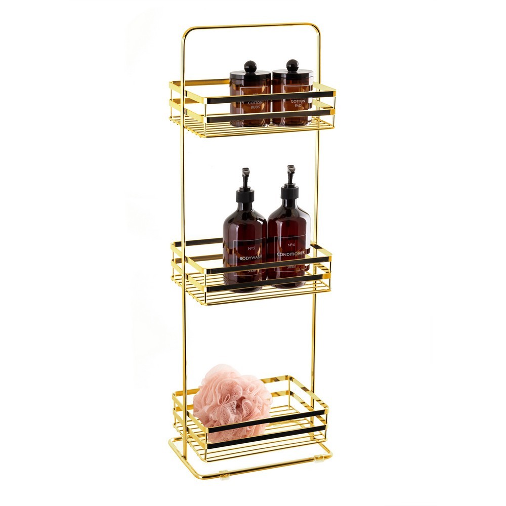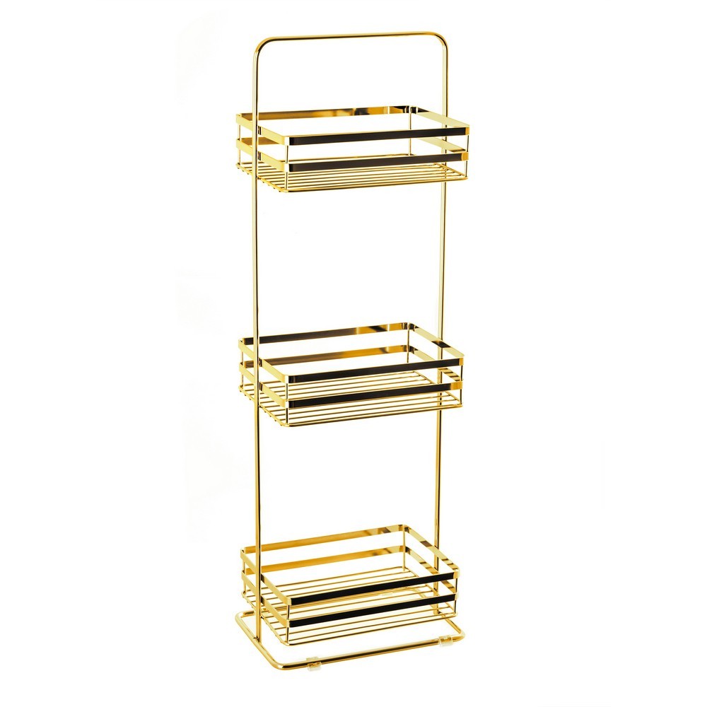 Popis: Elegantní ocelová police AWD INTERIOR je dokonalou kombinací stylu a funkčnosti. Vyrobeno z oceli s lesklou zlatou povrchovou úpravou, dokonale se hodí do moderních interiérů a dodává mu trendy. Tři prostorné police poskytují dostatek úložného prostoru při zachování kompaktních rozměrů, díky čemuž je ideální do koupelny, kuchyně nebo předsíně. Drátěná konstrukce mu dodává lehký vzhled, zatímco plastové nožičky chrání podlahu před poškrábáním. Jeho lehká, přenosná konstrukce umožňuje snadné přemístění podle vašich potřeb.